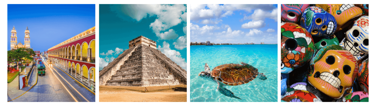 - Colonial Cities: Wander through the charming colonial cities of Mérida and Valladolid, colourful architecture, bustling markets, and vibrant cultural scenes. Visit historic plazas, admire grand cathedrals, and savour the local cuisine.